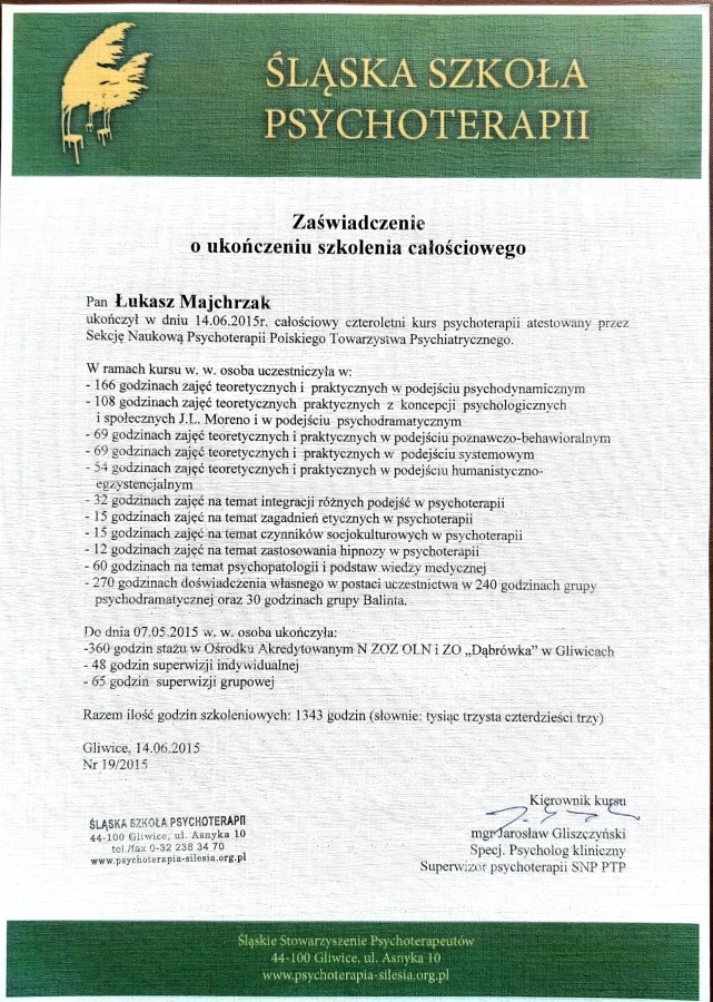 W uzasadnionych sytuacjach stosuję również elementy psychoterapii humanistycznej, poznawczo-behawioralnej oraz psychodramy.